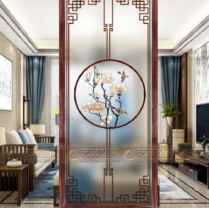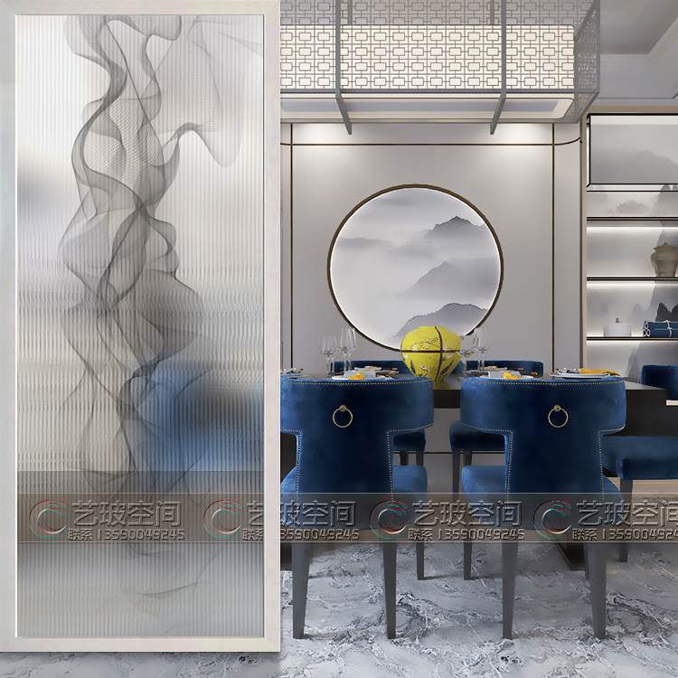 新中式屏风隔断客厅卧室洗手盆玄关现代简约磨砂透光钢化艺术玻璃