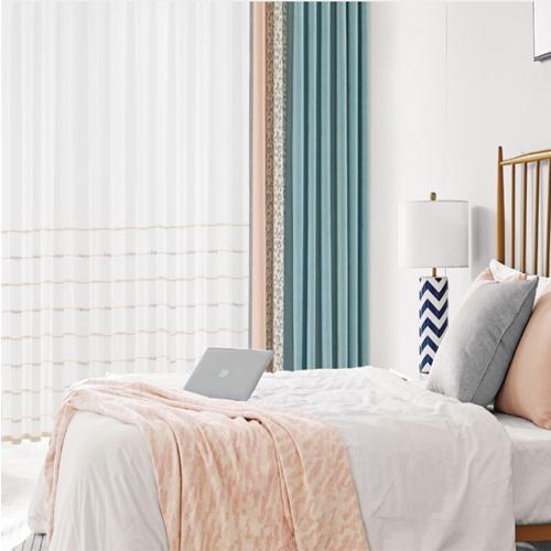 圣菲莱简约现代窗帘成品遮光北欧轻奢文艺棉麻风拼接客厅卧室书房窗帘布