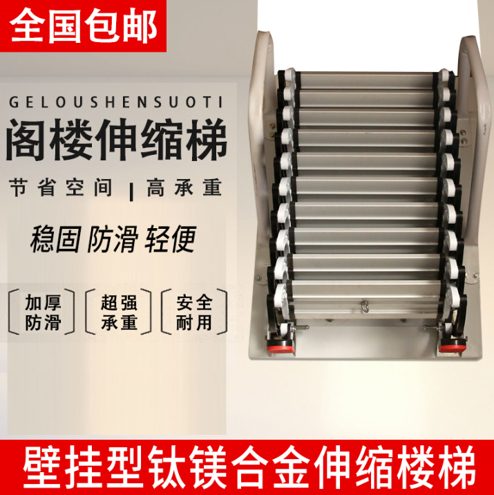 直销壁挂阁楼伸缩楼梯室内室外家用复式平台拉伸折叠隐形升降梯子