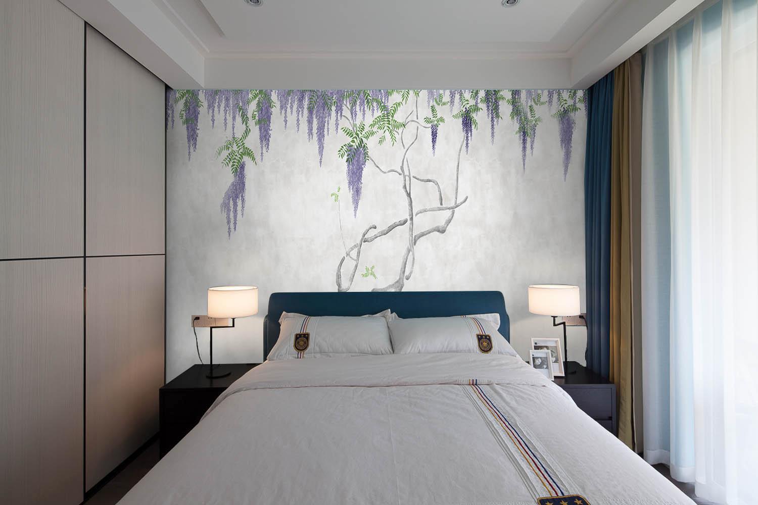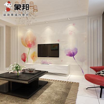 优屋墙画 中式无缝壁画墙布 客房墙整体 花卉墙画 客厅