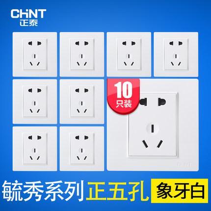 正泰开关插座安全钢架开关面板10只装二三眼五孔插座面板