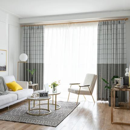 卡莎洛2020年现代简约成品雪尼尔拼接窗帘,客厅、卧室遮光窗帘