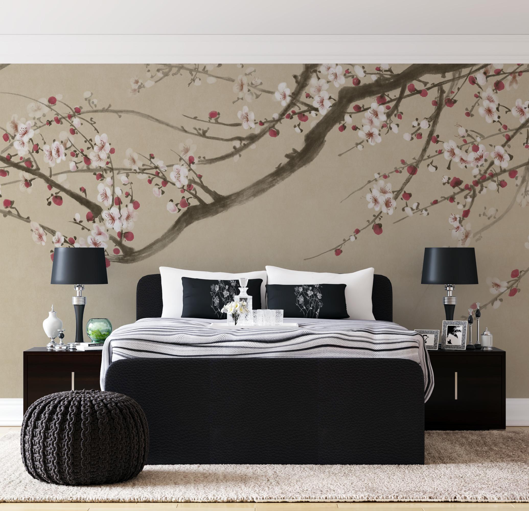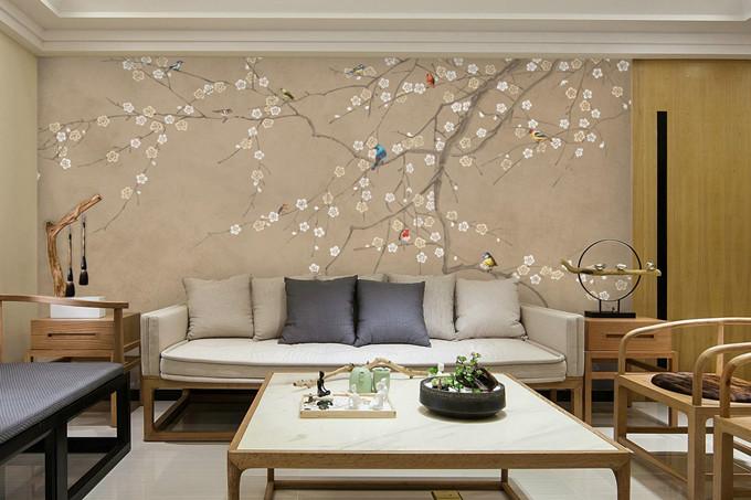 优屋墙画 中式无缝壁画墙布 电视背景墙整体 梅花墙画 客厅